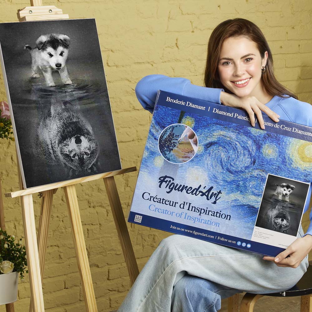 Sparkle your way to a masterpiece. The Figured’Art Diamond Painting Kit turns a 16"x20" canvas into dazzling wall art, covered entirely with shimmering square diamonds. Relax, follow the simple steps, and enjoy the satisfaction of creating your own sparkling décor piece.