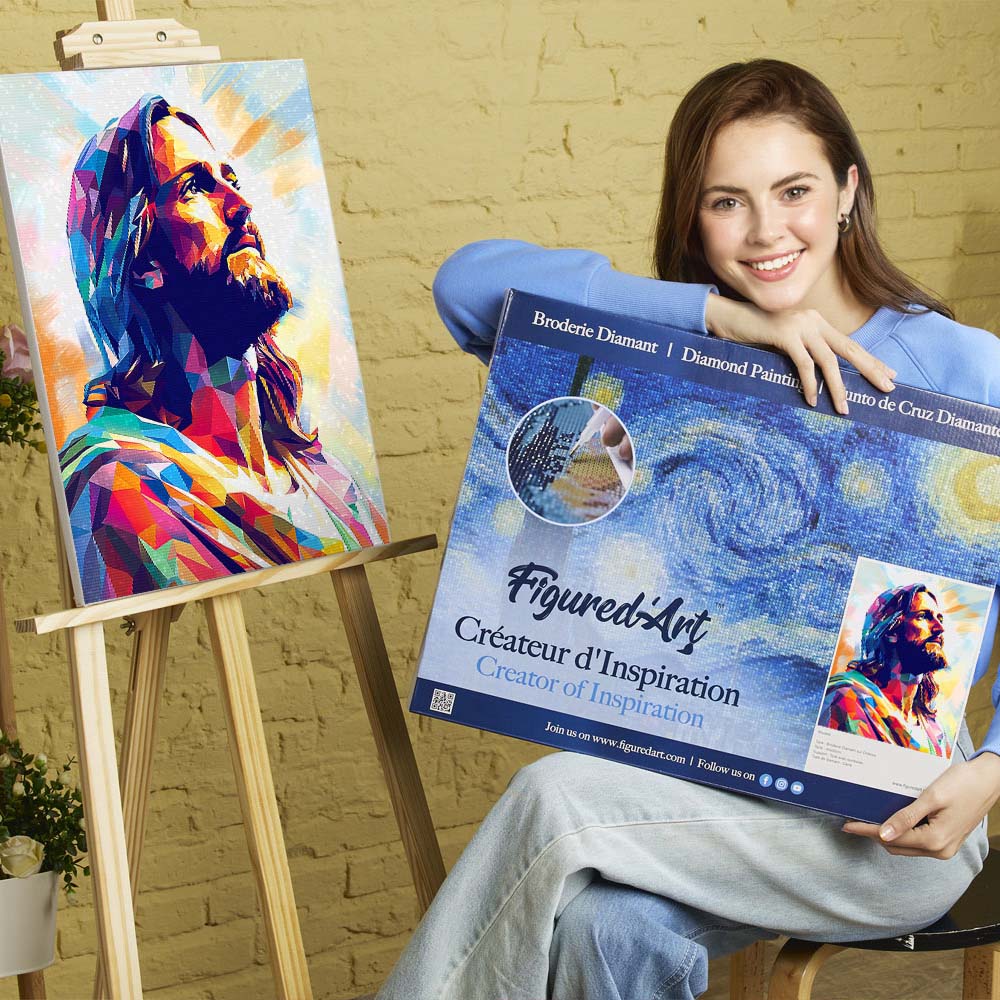 Sparkle your way to a masterpiece. The Figured’Art Diamond Painting Kit turns a 16"x20" canvas into dazzling wall art, covered entirely with shimmering square diamonds. Relax, follow the simple steps, and enjoy the satisfaction of creating your own sparkling décor piece.