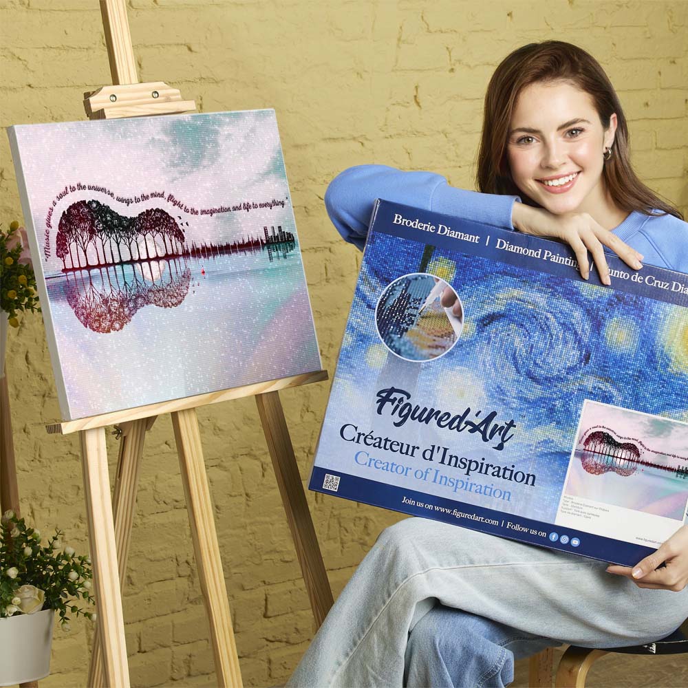 Sparkle your way to a masterpiece. The Figured’Art Diamond Painting Kit turns a 16"x20" canvas into dazzling wall art, covered entirely with shimmering square diamonds. Relax, follow the simple steps, and enjoy the satisfaction of creating your own sparkling décor piece.