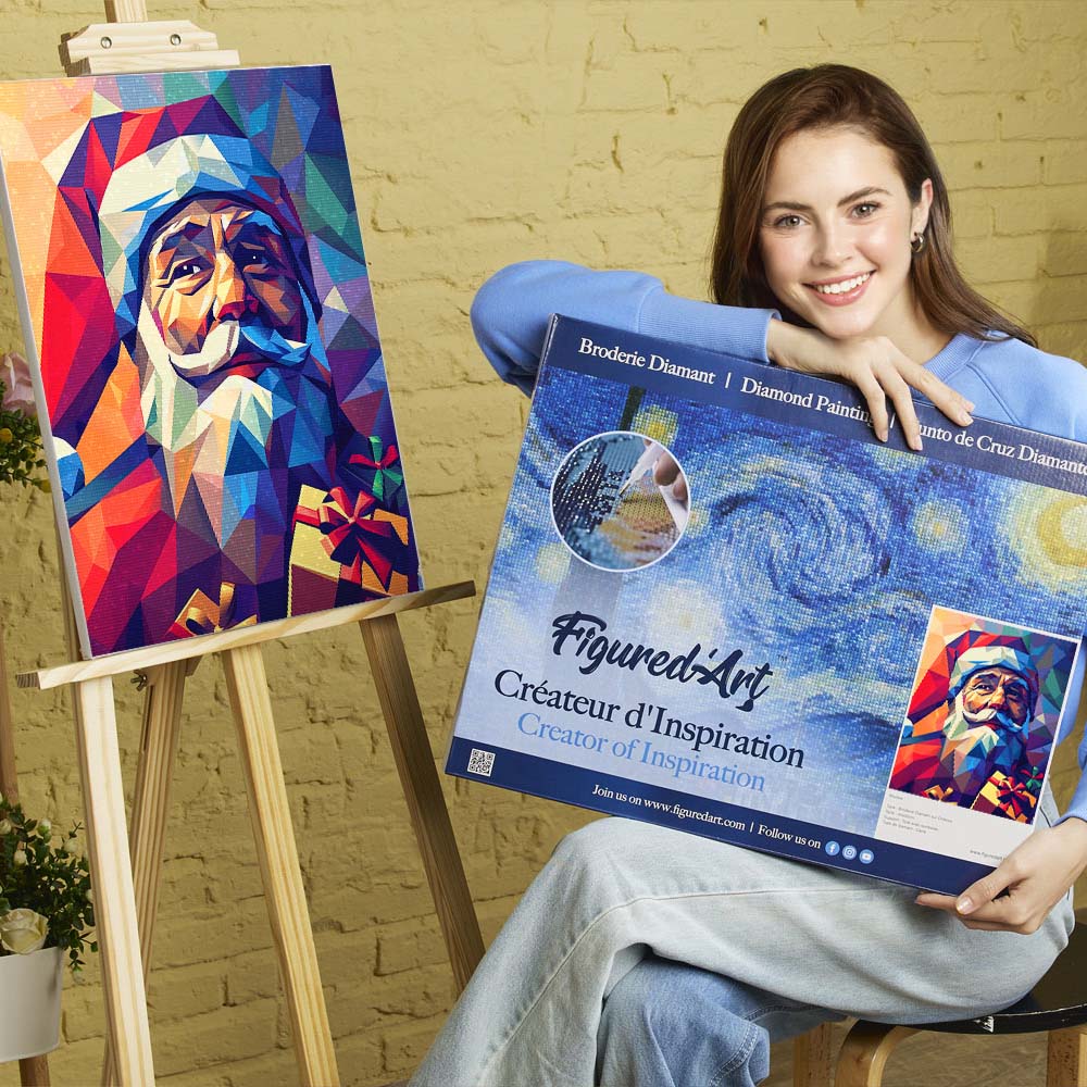 Sparkle your way to a masterpiece. The Figured’Art Diamond Painting Kit turns a 16"x20" canvas into dazzling wall art, covered entirely with shimmering square diamonds. Relax, follow the simple steps, and enjoy the satisfaction of creating your own sparkling décor piece.