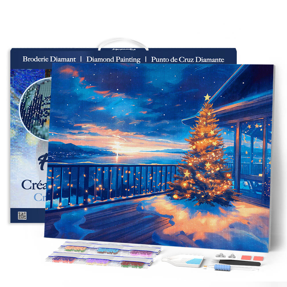 Twinkling Christmas Terrace - Already framed canvas
