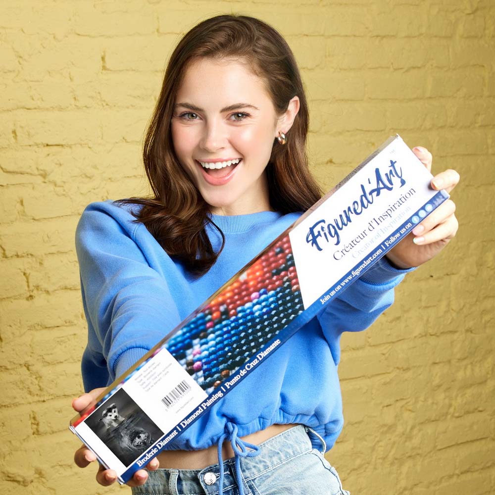 Sparkle your way to a masterpiece. The Figured’Art Diamond Painting Kit turns a 16"x20" canvas into dazzling wall art, covered entirely with shimmering square diamonds. Relax, follow the simple steps, and enjoy the satisfaction of creating your own sparkling décor piece.
