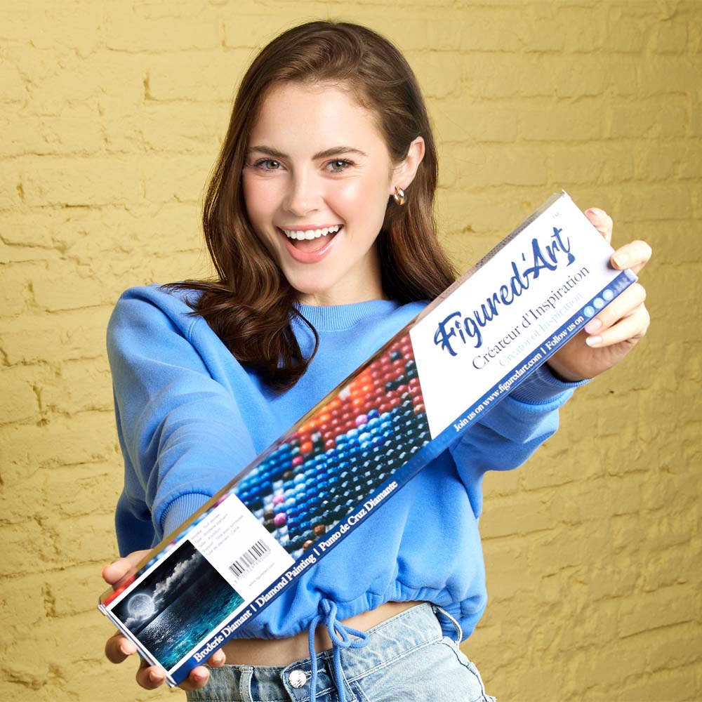 Sparkle your way to a masterpiece. The Figured’Art Diamond Painting Kit turns a 16"x20" canvas into dazzling wall art, covered entirely with shimmering square diamonds. Relax, follow the simple steps, and enjoy the satisfaction of creating your own sparkling décor piece.