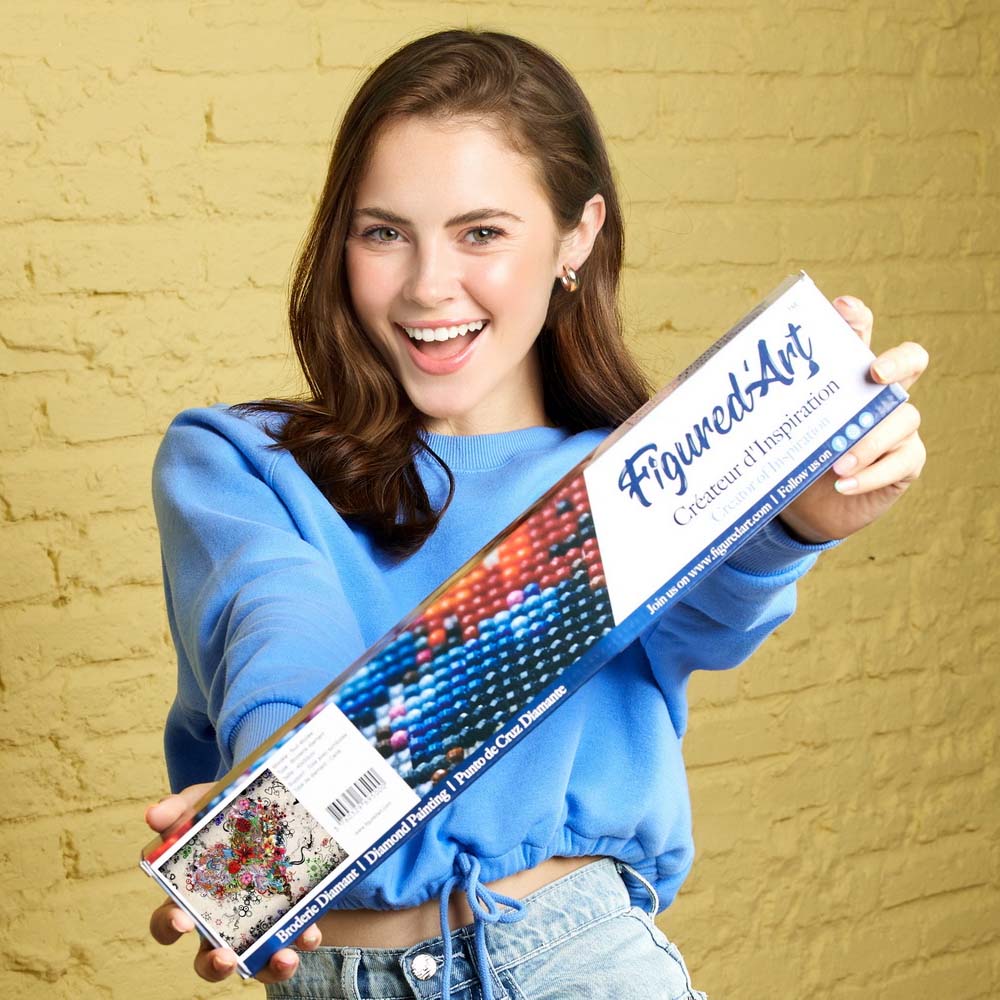 Sparkle your way to a masterpiece. The Figured’Art Diamond Painting Kit turns a 16"x20" canvas into dazzling wall art, covered entirely with shimmering square diamonds. Relax, follow the simple steps, and enjoy the satisfaction of creating your own sparkling décor piece.
