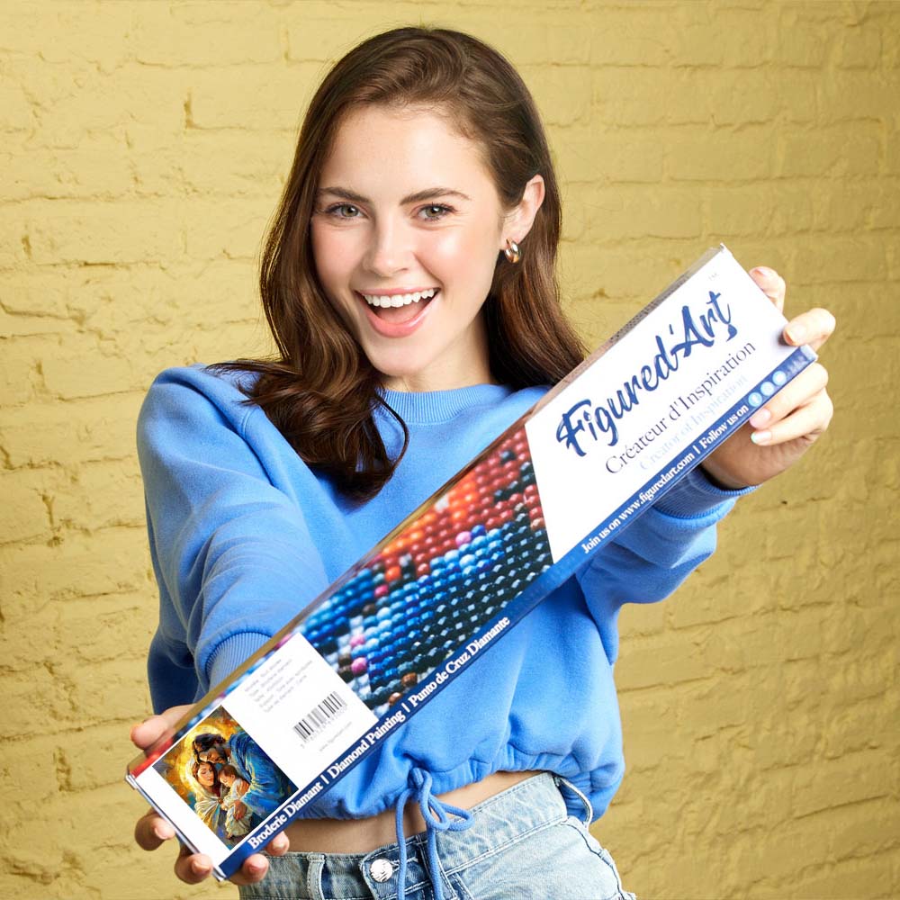 Sparkle your way to a masterpiece. The Figured’Art Diamond Painting Kit turns a 16"x20" canvas into dazzling wall art, covered entirely with shimmering square diamonds. Relax, follow the simple steps, and enjoy the satisfaction of creating your own sparkling décor piece.