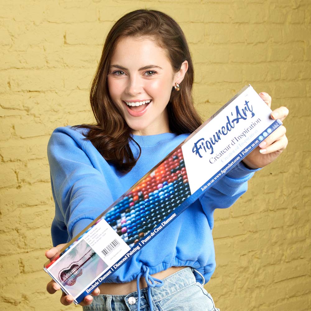 Sparkle your way to a masterpiece. The Figured’Art Diamond Painting Kit turns a 16"x20" canvas into dazzling wall art, covered entirely with shimmering square diamonds. Relax, follow the simple steps, and enjoy the satisfaction of creating your own sparkling décor piece.