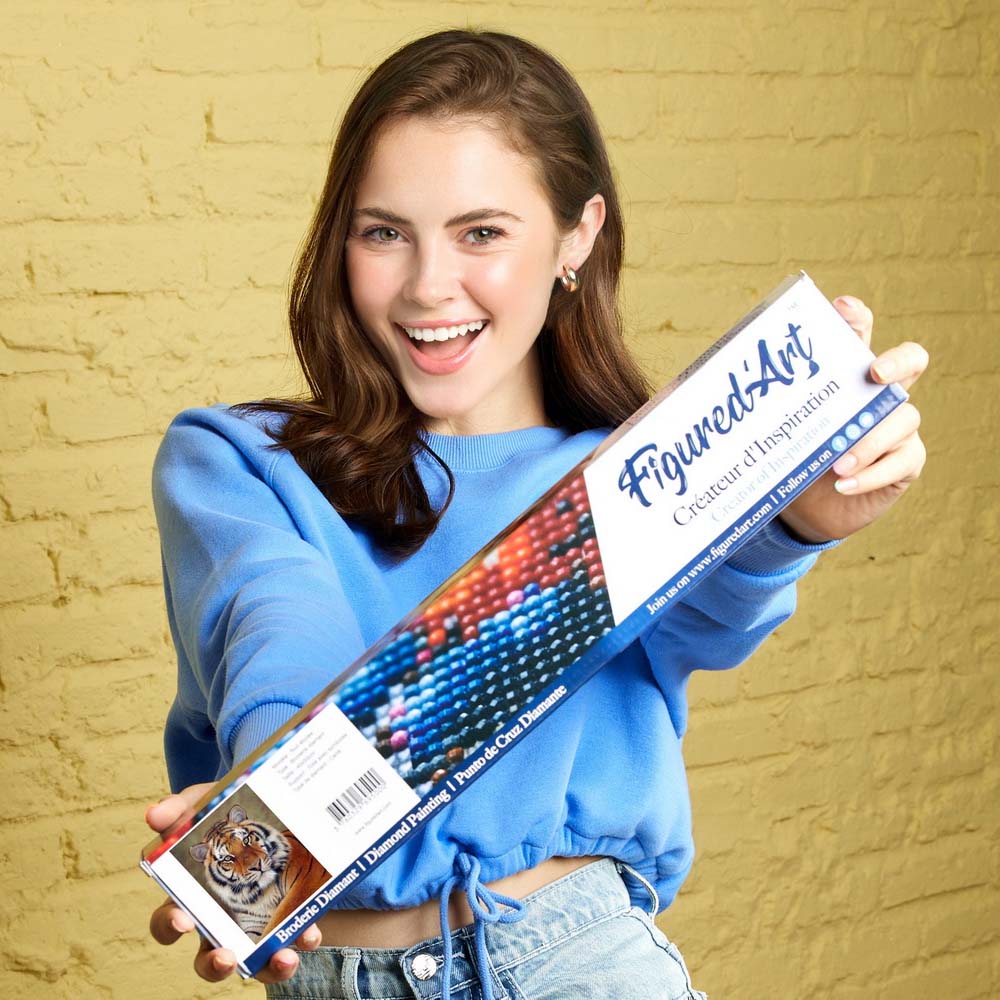 Sparkle your way to a masterpiece. The Figured’Art Diamond Painting Kit turns a 16"x20" canvas into dazzling wall art, covered entirely with shimmering square diamonds. Relax, follow the simple steps, and enjoy the satisfaction of creating your own sparkling décor piece.