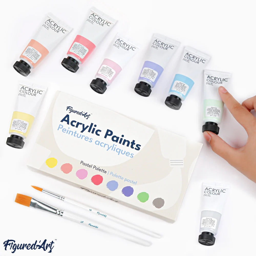 - Set of 8 pastel acrylic paints (non-firing ceramic style)