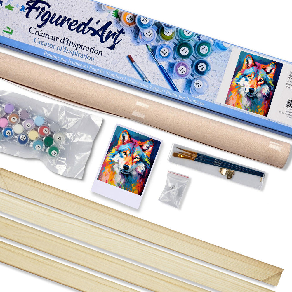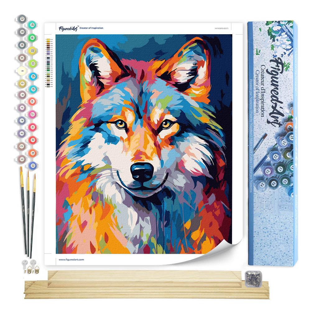 Colorful Abstract Wolf - Rolled canvas + DIY frame