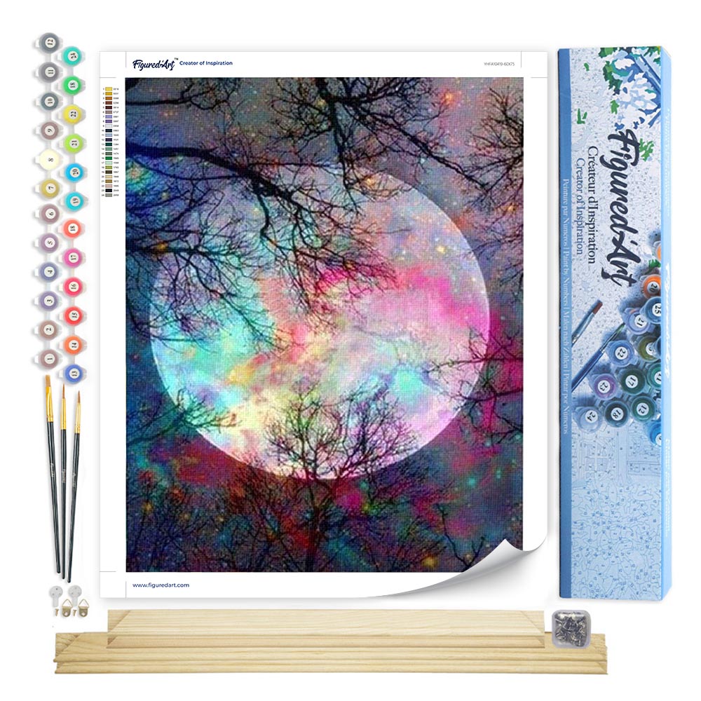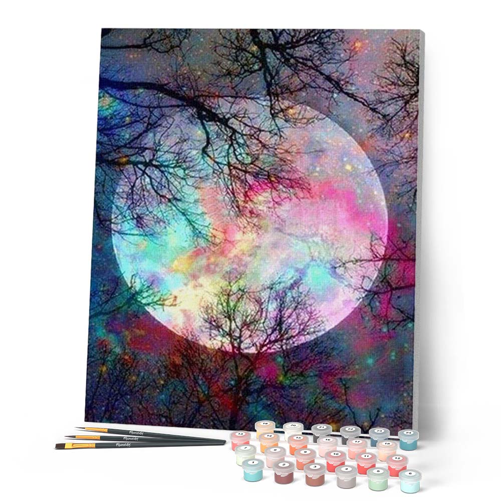 Full Moon with colorful reflections - Rolled canvas + DIY frame